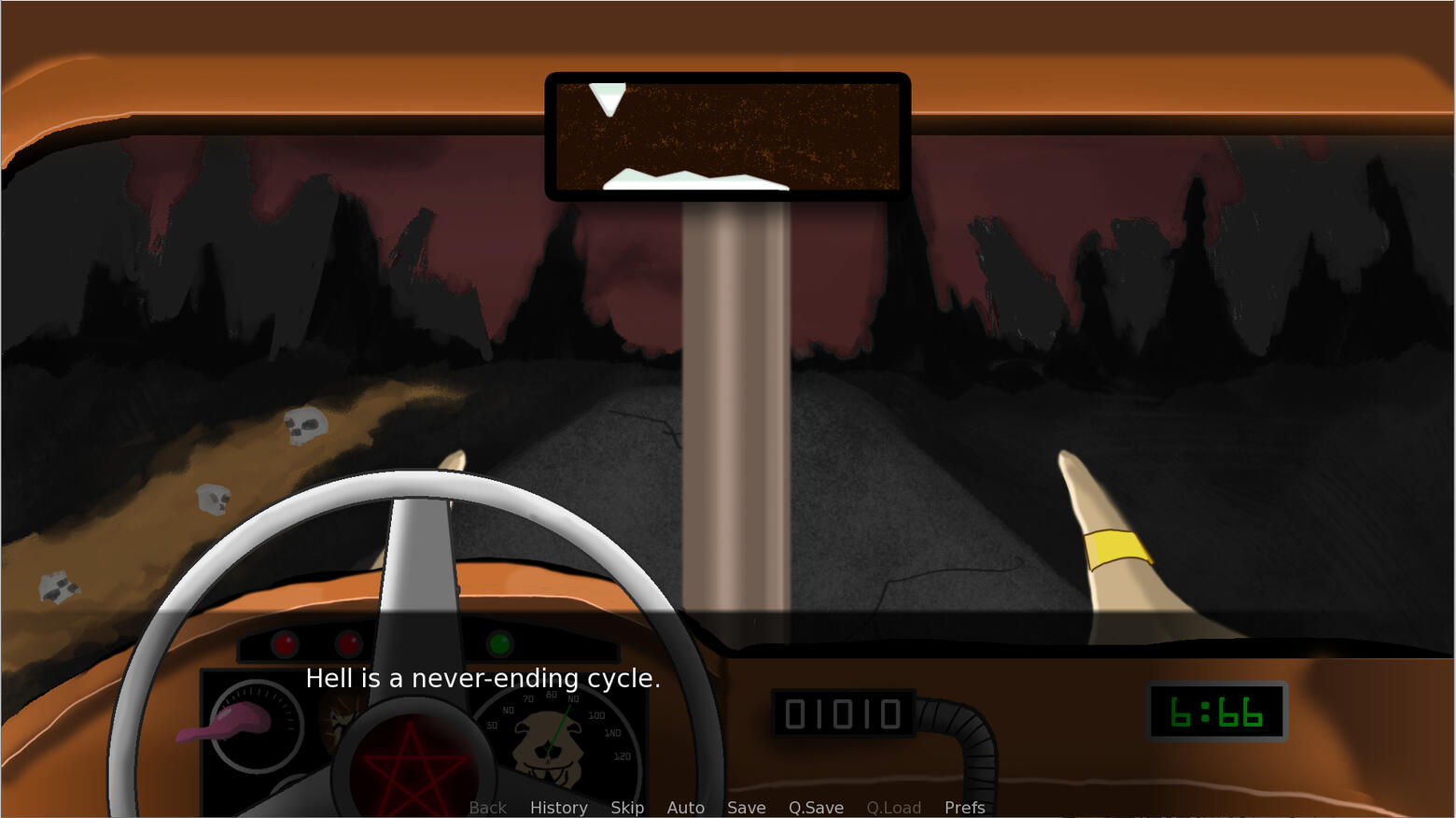 A short Visual Novel made as a collaborative effort for an O2A2 game jam. The story revolves around an unnamed bus driver lamenting his dead-end job, unaware of the mental prison he's placed himself into. As this was a group project for a visual novel jam, I got to experience networking and collaborating with people online.